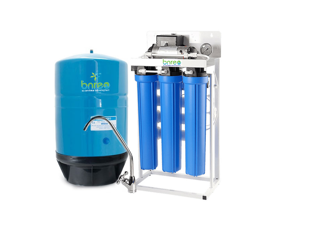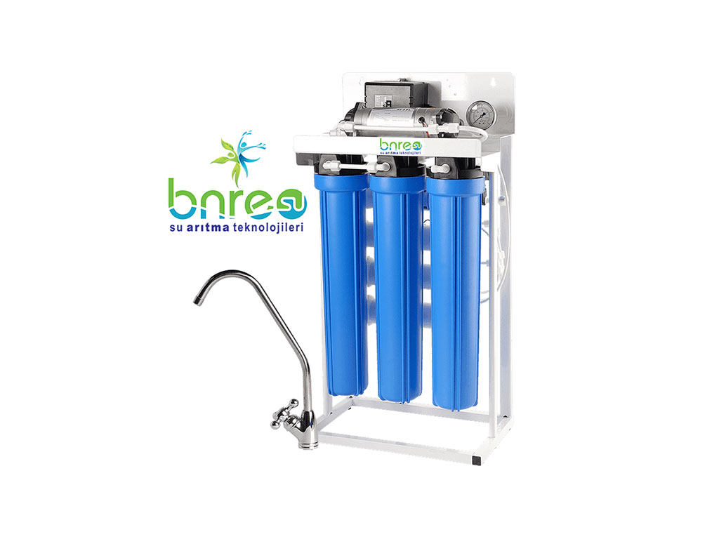 Yüksek kapasiteli bir işyeri su arıtma cihazı olan Bnreo Pro su arıtma cihazı, ters osmoz teknolojisine sahip bir cihazdır. 5 aşamalı bir filtreleme sistemine sahip olup, yüksek kalitede ve lezzette içme suyu elde eder. Bnreo Pro su arıtma cihazı, 60 LT basınçlı bir tanka sahiptir. Günde 10 damacana su arıtarak işyerlerine son derece önemli bir tasarruf sağlar. Cihaz kendisini iki aydan çok daha kısa sürede amorti etmektedir.
