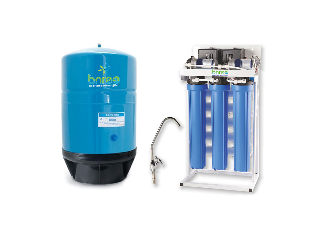 Yüksek kapasiteli bir işyeri su arıtma cihazı olan Bnreo Proplus su arıtma cihazı, ters osmoz teknolojisine sahip bir cihazdır. 5 aşamalı bir filtreleme sistemine sahip olup, yüksek kalitede ve lezzette içme suyu elde eder.Bnreo Proplus su arıtma cihazı, 80 LT basınçlı bir tanka sahiptir. Günde 20 damacana su arıtarak işyerlerine son derece önemli bir tasarruf sağlar. Cihaz kendisini iki aydan çok daha kısa sürede amorti etmektedir.