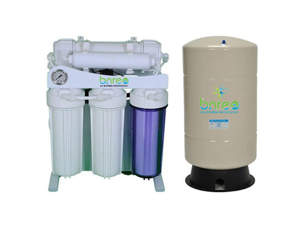 Yüksek kapasiteli bir işyeri su arıtma cihazı olan Bnreo Smart su arıtma cihazı, ters osmoz teknolojisine sahip bir cihazdır. 5 aşamalı bir filtreleme sistemine sahip olup, yüksek kalitede ve lezzette içme suyu elde eder. Bnreo Smart su arıtma cihazı, 40 LT basınçlı bir tanka sahiptir. Günde 7 damacana su arıtarak işyerlerine son derece önemli bir tasarruf sağlar. Cihaz kendisini iki aydan çok daha kısa sürede amorti etmektedir.